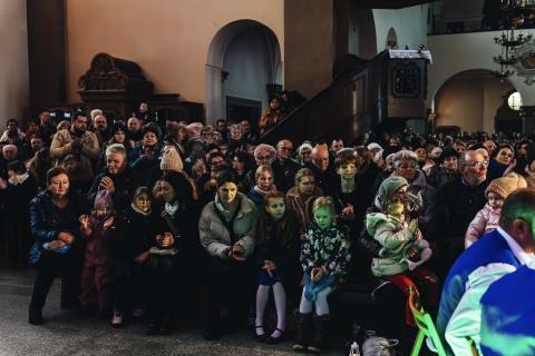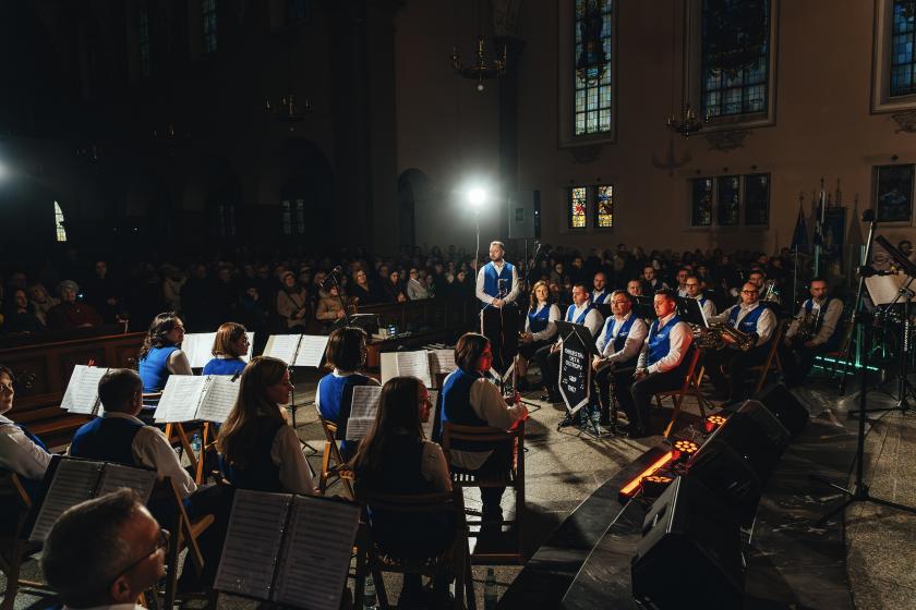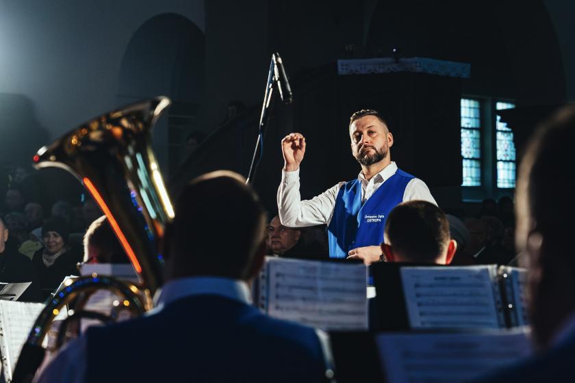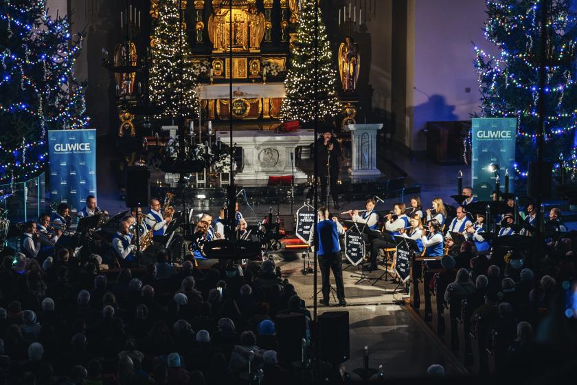 - Świętowanie Bożonarodzeniowe rozpoczęliśmy wszyscy w małym rodzinnym gronie. A potem spotkaliśmy się w kościele na Mszy św. przy ołtarzu. Teraz natomiast wypełniamy tę świątynię i ta wyjątkowa muzyka pozwoliła nam rozszerzyć nasz horyzont świętowania jeszcze dalej - tymi słowami Biskup Sławomir Oder podsumował jubileuszowy Koncert Kolęd w wykonaniu Orkiestry Dętej Ostropa. Biskup Gliwicki zwrócił uwagę na drogę, jaką przebyli uczestnicy tego wydarzenia: od intymności rodzinnego stołu, przez wspólnotę parafialną, aż po uniwersalne doświadczenie muzyczne.