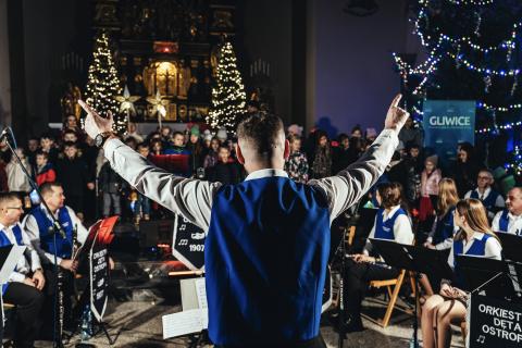 Wydarzenie, które stało się okazją do tych refleksji, to jubileuszowy, dziesiąty „Koncert Kolęd”, który odbył się tradycyjnie w drugi dzień Świąt Bożego Narodzenia w parafii Ducha Świętego w Gliwicach-Ostropie. Prowadzący spotkanie Mikołaj Miczka przybliżył zgromadzonym historię zespołu, którego korzenie sięgają początku XX wieku i liczy już 118 lat. Zespół powstał w 1907 roku z inicjatywy Józefa Kaszka, który był dla muzyków pierwszym nauczycielem i wzorem. Ważną postacią w dziejach formacji był również drugi kapelmistrz, pan Alfons Palenga, któremu orkiestra zawdzięcza swoje przetrwanie i istnienie do czasów współczesnych. Współczesny rozdział w historii zespołu rozpoczął się w 2014 roku, kiedy funkcję kapelmistrza objął pan Łukasz Wieczorek. To właśnie on, wspólnie z Magdaleną Balcer, zainicjował tradycję bożonarodzeniowych Koncertów Kolęd w Ostropie. Cykl ten trwa nieprzerwanie od dekady (z roczną przerwą spowodowaną pandemią), gromadząc słuchaczy na wspólnym przeżywaniu tajemnicy Betlejemskiej Nocy.