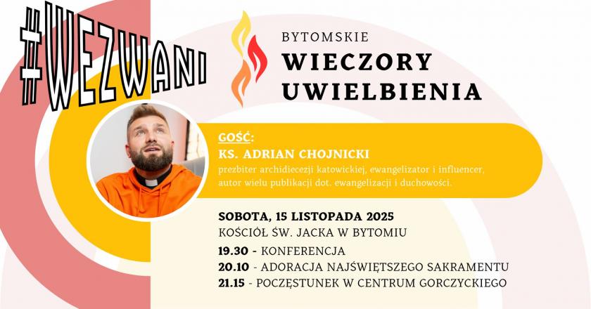 Podczas listopadowego Bytomskiego Wieczoru Uwielbienia ks. Adrian Chojnicki zaprosił do odkrywania, że wiara dojrzewa nie w wyjątkowych chwilach, ale w tym, co zwykłe i powtarzalne. Mówił o bliskości Ojca, który pragnie, byśmy przyszli do Niego jak dzieci; o Jezusie, który niesie krzyż z miłości i uczy nas realizmu ucznia; oraz o Duchu Świętym, który dodaje odwagi i posyła do działania.