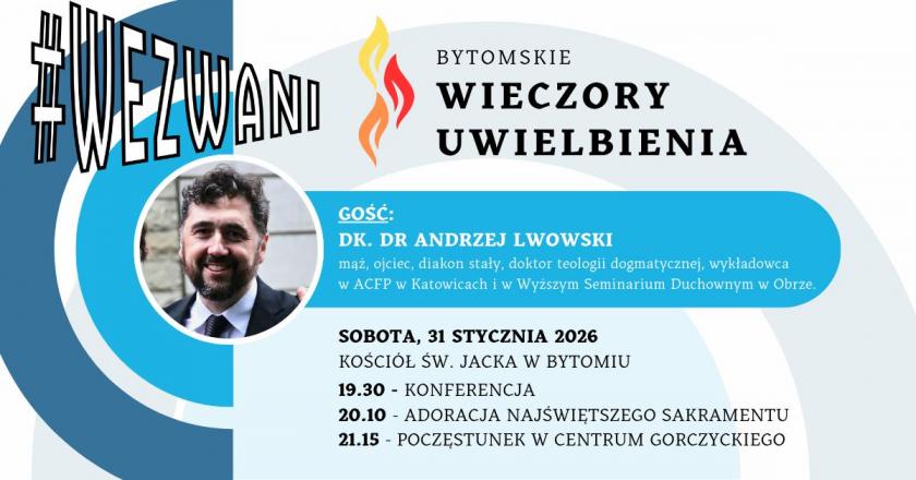 Bytomskie Wieczory Uwielbienia to przestrzeń spotkania z Bogiem i drugim człowiekiem – cykl modlitewnych wieczorów, które pomagają umacniać wiarę w codzienności. W Roku Jubileuszowym Kościoła, kontynuując drogę „Pielgrzymów nadziei”, wchodzimy w trzeci sezon naszych spotkań pod wspólnym hasłem #Wezwani.