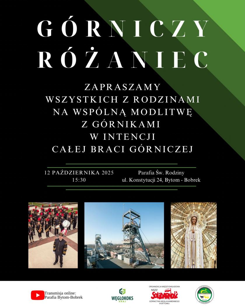 Transmisja internetowa z Górniczego Różańca będzie dostępna na kanale parafii Świętej Rodziny w Bytomiu-Bobrku.