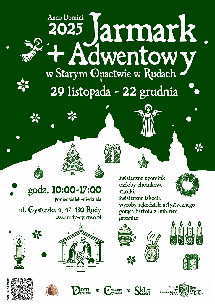 Jarmark Adwentowy w Starym Opactwie w Rudach czynny będzie od 29 listopada do 22 grudnia 2025 r., codziennie - od poniedziałku do niedzieli, w godzinach 10:00–17:00.