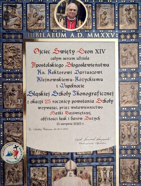 W jubileuszowym roku wspólnota Śląskiej Szkoły Ikonograficznej otrzymała również apostolskie błogosławieństwo Ojca Świętego Leona XIV, udzielone jako znak uznania dla jej formacyjnej, teologicznej i artystycznej działalności.