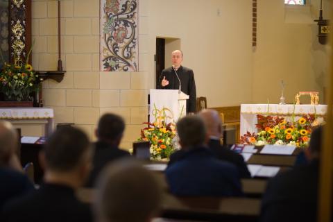 „To jest paradoks, ale i tajemnica kapłańskiego życia: nadzieja nie rodzi się w sukcesie, ale w krzyżu. Krzyż jest pieczęcią prawdy o Bożej miłości. Ale jest też kryterium naszej miłości do Niego. [...] Myślę, że te słowa [Chrystusa o imionach zapisanych w niebie] stanowią cenną wskazówkę i dla nas dzisiaj. Kościół to rzeczywistość Boża, żyje Bożą logiką i to co ludzkie jest na służbie Bożego planu. [...] Nie frekwencja, nie liczby, nie zewnętrzne laury. Ale to, że nasze imiona zapisane są w niebie, jest miarą naszego sukcesu. To, że jesteśmy wierni – nawet jeśli nikt tego nie zauważy. To, że pozwalamy, by Boży ogień płonął w nas i nas oczyszczał. [...] Bracia, życzę wam i sobie takiego optymizmu, który rodzi się nie z naiwności, ale z wiary. Wiary, że Jezus jest żarem i płomieniem naszych serc. Że On sam jest murem i obroną swojego Kościoła. Że nasza cicha, codzienna posługa – nawet jeśli po ludzku niewidoczna – zapisuje nasze imiona w niebie.”