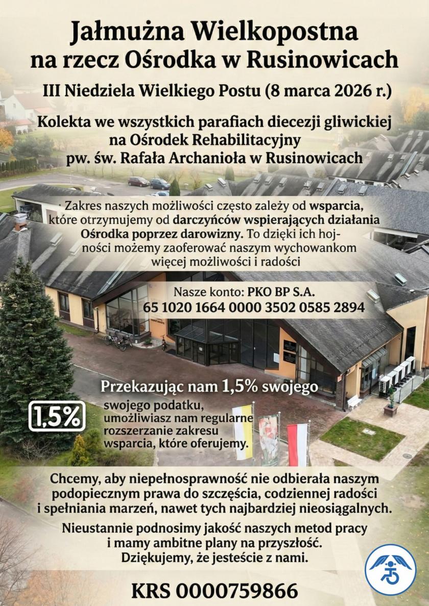 Trzecia niedziela Wielkiego Postu w naszej diecezji od lat jest dniem szczególnym. To dzień solidarności z osobami chorymi i z niepełnosprawnościami oraz corocznej zbiórki na rzecz Ośrodka Rehabilitacyjnego w Rusinowicach. To dzieło, które zrodziło się z troski Kościoła gliwickiego i od 1994 roku służy dzieciom oraz młodzieży z całej Polski.