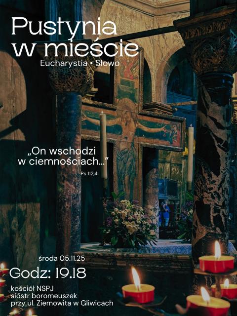 Na najbliższe adwentowe spotkanie w ramach cyklu Pustynia w mieście zapraszamy wszystkich, którzy pragną odnowić w sobie tęsknotę za Bogiem i pozwolić, by Jego Słowo prowadziło przez tempo i zgiełk życia. Roraty odprawione w wieczornej porze, w przestrzeni kościoła sióstr boromeuszek, tworzą atmosferę modlitwy i ciszy, w której łatwiej zobaczyć drogę, jaką Pan wskazuje.