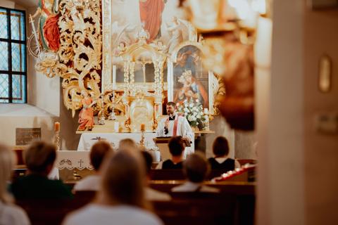 W kościele św. Katarzyny Aleksandryjskiej odbyło się nabożeństwo, które poprowadził ks. Sebastian Binkowski. - Przez wieki św. Jan Nepomucen nie stracił na ważności jako nasz patron. Bo to nie jest tylko przeszłość, on może być patronem dla nas, współczesnych ludzi - podkreślił.