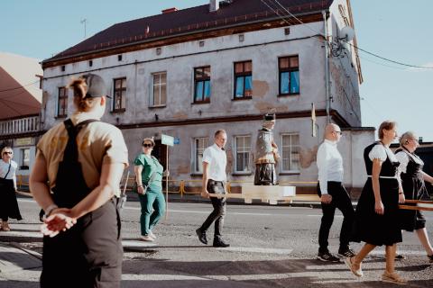 Po zakończonym nabożeństwie wszyscy przeszli pod pomnik na rynku, gdzie przypomniane zostały najważniejsze fakty z życia świętego pochodzącego z Pomuku (późniejsza nazwa Nepomuk), niedaleko Pilzna w Czechach.