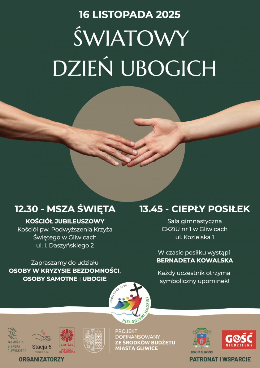 W niedzielę, 16 listopada 2025 roku, w Gliwicach odbędą się diecezjalne obchody Światowego Dnia Ubogich. Wydarzenie wpisuje się w przeżywany w całym Kościele Rok Jubileuszowy „Pielgrzymi nadziei” i odbywa się pod hasłem „Ty jesteś mą nadzieją” (Ps 71, 5). Tegoroczny Dzień przypomina, że prawdziwa nadzieja nie rodzi się z bezpieczeństwa ani dobrobytu, lecz z wiary w Boga, który nie opuszcza człowieka w trudzie i słabości oraz z relacji, jakie budujemy z drugim człowiekiem.