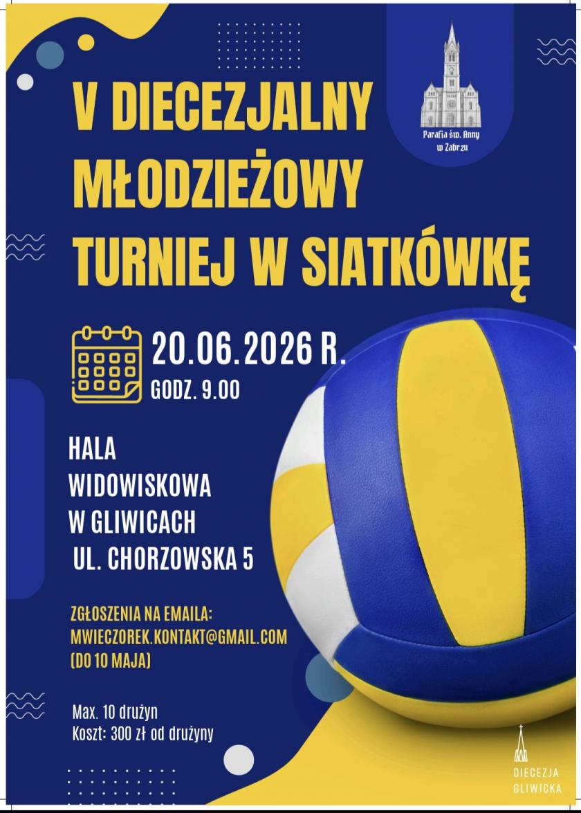 Młodzi sportowcy z diecezji gliwickiej po raz kolejny zmierzą się na siatkarskim parkiecie. Już 20 czerwca 2026 roku odbędzie się piąta edycja Diecezjalnego Młodzieżowego Turnieju w Piłce Siatkowej. Zapraszamy wspólnoty parafialne do wspólnej sportowej rywalizacji!