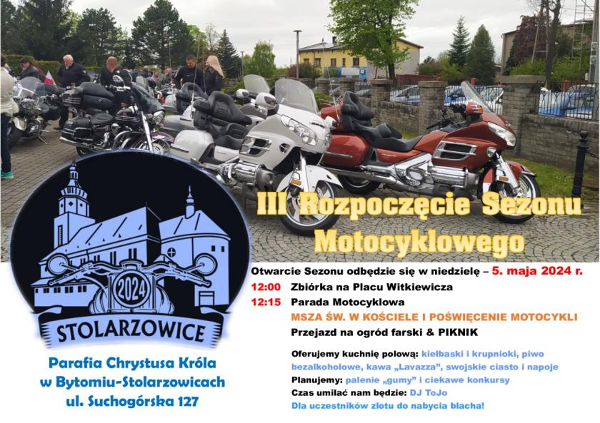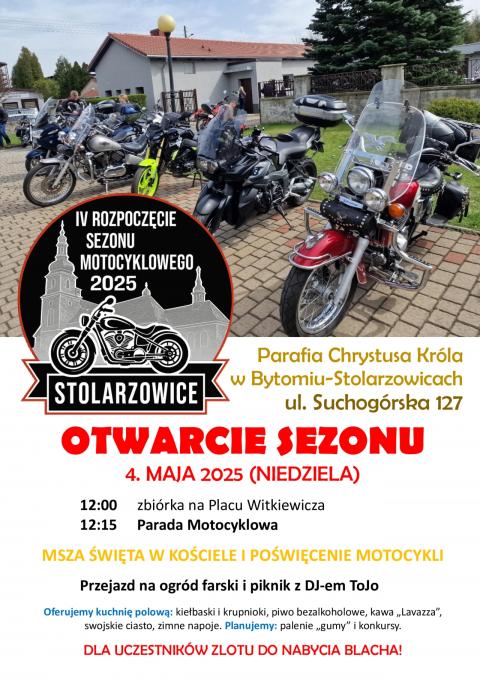 Na Waszych motorowych i rowerowych szlakach nie zapomnijcie skręcić 3. maja 2026 r. na drogę prowadzącą do Parafii Chrystusa Króla w Bytomiu - Stolarzowicach (ul. Suchogórska 127)!
